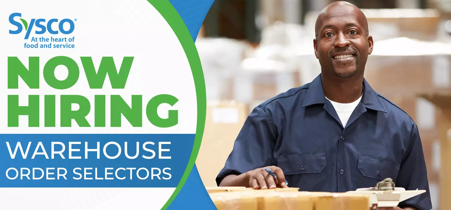Work in a Sysco warehouse and be a critical member of the food service supply chain. Warehouse Selectors pick orders for delivery to food service venues in the local community.